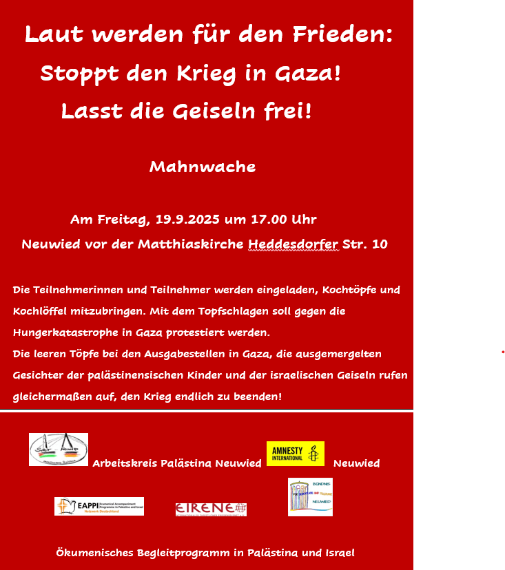 Am 19.09.25 nahmen wir an der Mahnwache an der Matthiaskirche Neuwied teil.